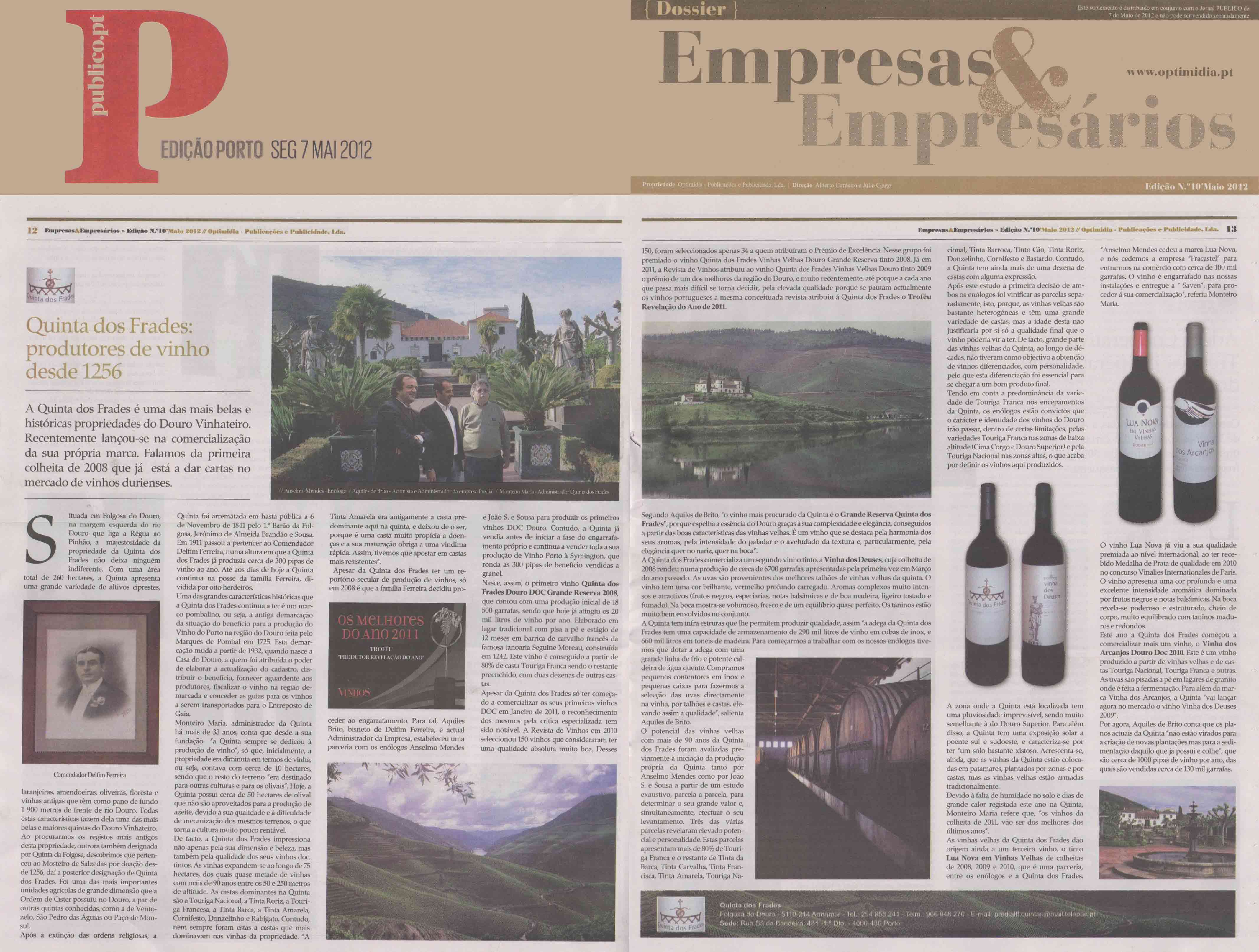 • Feature story on Quinta dos Frades and the wines it produces, published in the “Empresas & Empresários” section of the newspaper Público of 7 May 2012